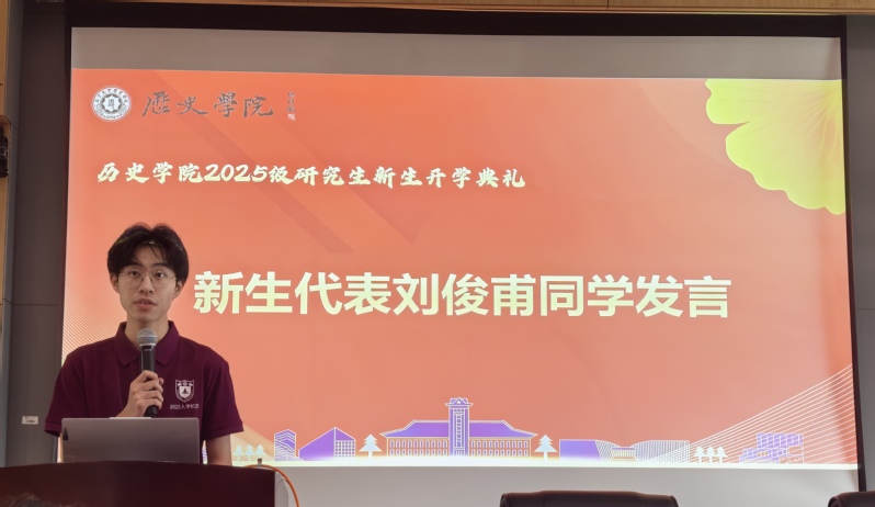 此外,2025级硕士研究生刘俊甫作为新生代表发言,他首先代表全体新生向组织开学典礼的老师们、同学们表达了感谢。谈到前辈学者的抉择,刘俊甫表示,我们2138cc太阳集团官网入口学子要将个人抉择与历史相结合,利用自己的历史素养把握时代脉络、理解中国道路。他认识到,作为研究生需要从知识接受者向研究者转变,在历史长河中寻找值得探索的问题。适逢教师节临近,刘俊甫还代表新生向老师们送上节日祝福。