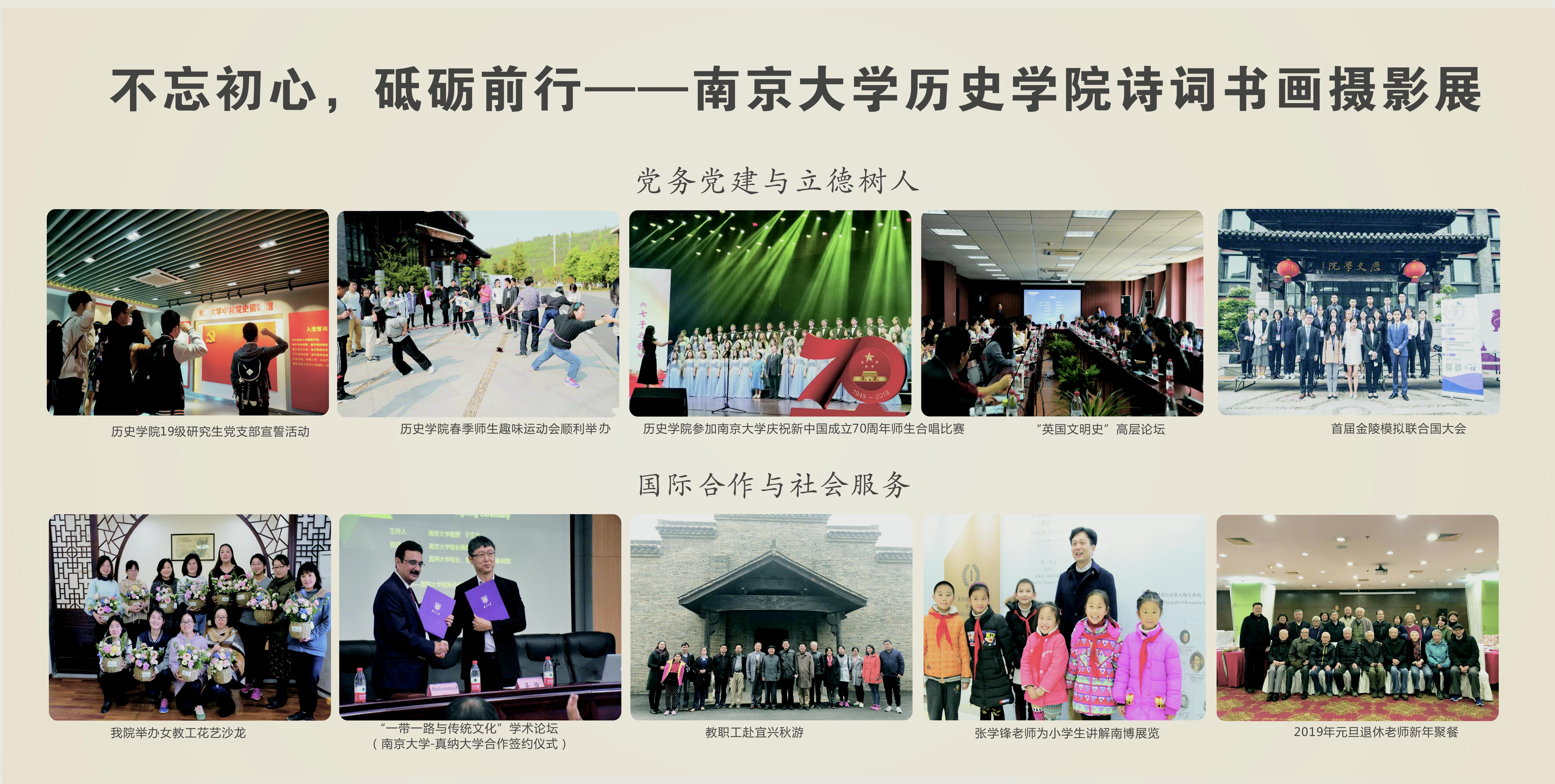 金秋十月,值中华人民共和国成立七十周年之际,历史公司党委、工会于十月下旬至十一月上旬举办了以“不忘初心,砥砺前行”为主题的教职工诗词书画展览。著名历史学家茅家琦先生、2138cc太阳集团官网入口周晓陆教授、杨休教授、于文杰教授、武黎嵩副教授,以及著名书法家曹洋教授提交了他们的书法作品,杨振亚教授、曹大臣教授分别提交了篆刻和诗词作品,部分员工书法作品也参加了展览。
