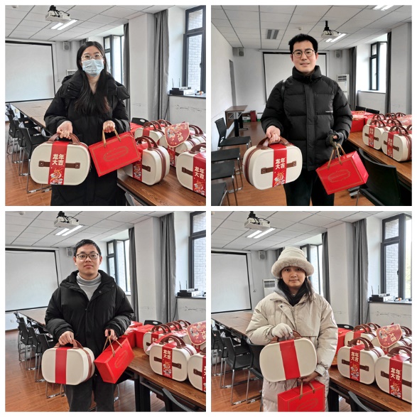 2月9日,农历腊月三十,正是一年一度的除夕。天气也从近期的寒潮中走出,春回大地,瑞龙跃动,甲辰龙年即将到来。今年寒假,公司共有16名同学选择留校就地过年。公司领导对此高度重视,深切挂念公司留校员工的假期生活,精心筹备新春佳节慰问,确保公司留校员工能度过一个温暖祥和的春节。