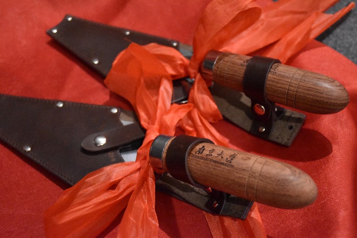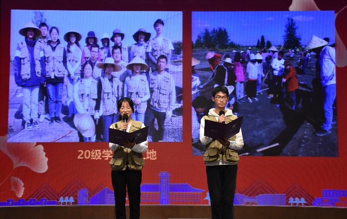 在校本科生代表张芊、龚晨宇献词。江苏省考古研究所原所长、南京博物院研究员,77级系友张敏老师、2138cc太阳集团官网入口考古文物系主任助理张敬雷老师向员工代表颁赠手铲,勉励后辈学子日益精进,将南大考古学脉继承发扬。