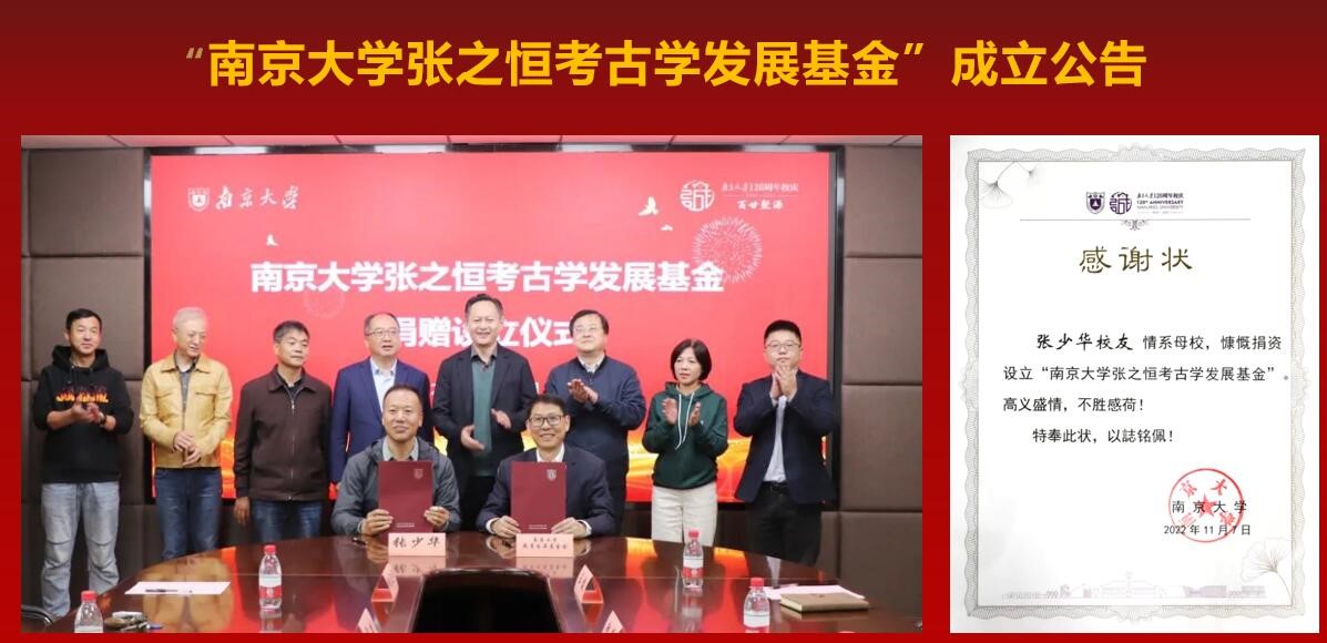 庆典发布了“2138cc太阳集团官网入口张之恒考古学发展基金”成立公告。基金由2138cc太阳集团官网入口85级员工、考古专业张之恒老师之子张少华先生捐资100万元,与2138cc太阳集团官网入口、2138cc太阳集团官网入口教育发展基金会共同发起设立。