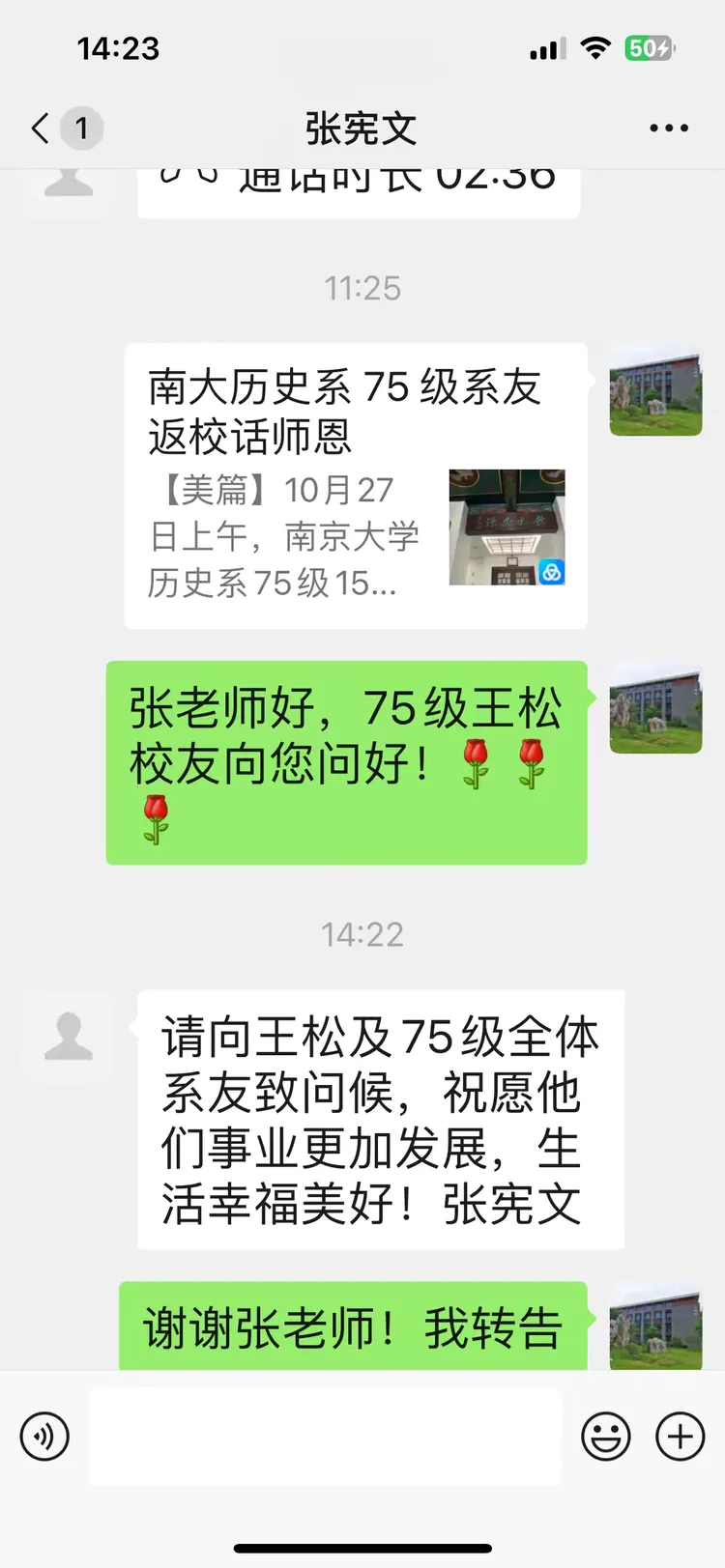 此次座谈是员工们入校50周年纪念活动的第三天行程。整个纪念活动委托旅游公司统筹安排,员工们统一入住南园宾馆。考虑到各位员工均已年过七旬,活动节奏安排得较为从容:首站参观了当年就读的鼓楼校区,次日前往中山陵拜谒,第三天则专程来到仙林校区参观交流。