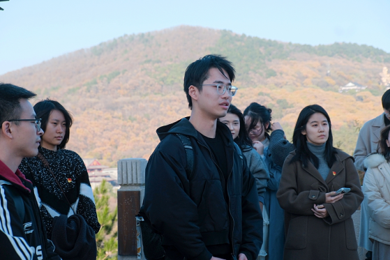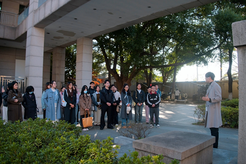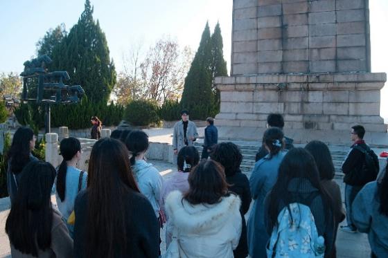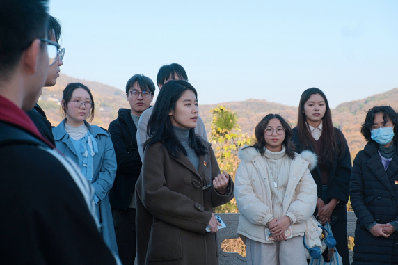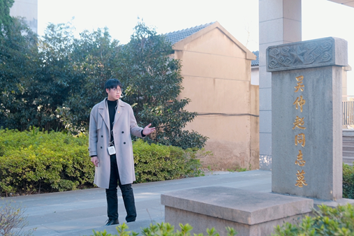 在巍然矗立的苏南抗战胜利纪念碑下,苏豪同学的讲述使得同学们进一步体悟新四军的另一面——他们既是英勇善战的“铁军”,也是烽火年代的“文化播种队”。为了唤醒民众、凝聚抗战力量,新四军在艰苦条件下坚持开展文化启蒙,用门板作黑板、以膝盖当课桌,在田间地头办起扫盲班和读报组,在战火的洗礼中播种了文化的种子。正是这些星星点点的文化火种,让无数群众第一次写下自己的名字,读懂“抗日救国”的深刻意义,以文化为桥将千千万万人的心汇聚在一起,铸就起一道坚不可摧的文化统一战线。