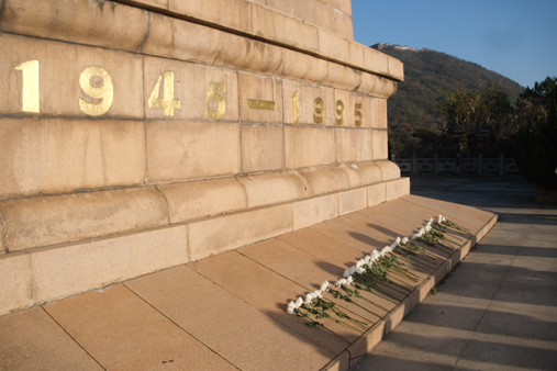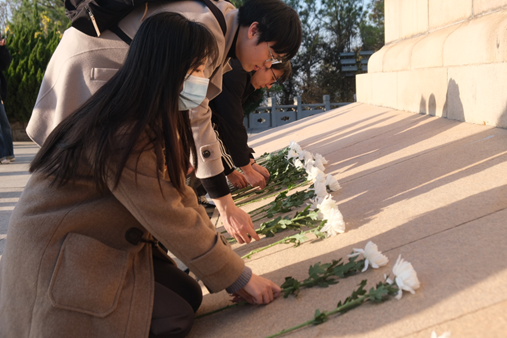 苏南抗战胜利纪念碑巍然矗立,苍松翠柏环绕,见证着历史的厚重与荣光。“青春寄语”活动结束后,党员师生列队肃立,手持象征崇高敬意的鲜花,缓步走向纪念碑,以庄重的仪式向革命先烈献上深切的追思。每一朵鲜花,都寄托着同学们对先辈的崇敬与缅怀;每一次鞠躬,都表达着新时代青年继承遗志、砥砺前行的坚定信念。先辈们以生命凝成的精神力量,犹如明灯照亮前路,激励青年一代在新时代的征程中继续书写属于他们的使命与担当。