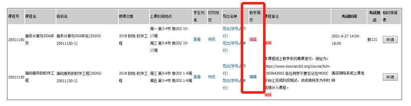 课程教学大纲原则上应在开学前填好,便于员工根据大纲内容进行选课。教学周历可根据课程设置随时进行维护。学期结束,周历将不能调整。