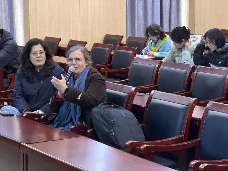 同学们展开了热烈而富有启发性的交流。有同学从电影对战争中个体经历的聚焦,引申至历史研究中微观视角的价值,并藉“平庸之恶”探讨人性的复杂性;也有同学以巴别塔为喻,指出电影中“伪波斯语”从求生手段到生命意义载体的转变。谈及如何向社会公众传递历史时,艾伊娜老师结合亲身经验,提出应通过多层次方式,使真实的历史可触可感。面对网络空间中历史叙事的多样,同学们也认为:理性对话、线下交流与持续学习,是抵制历史虚无、传播和平理念的重要途径。