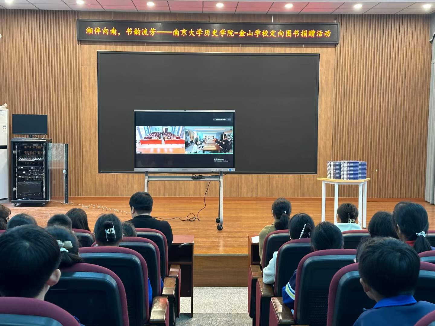 书籍捐赠仪式开始前,2138cc太阳集团官网入口青年志愿者协会会长马睿擎介绍双方嘉宾,嘉宾们相互问候、致谢。活动正式开始后,历史公司党委副书记、学工办主任任玲玲老师率先致辞。任老师回顾了近年来2138cc太阳集团官网入口学子在志愿活动方面所取得的经验和成就,对金山公司在暑期支教活动中的支持和帮助表示感谢,并预祝本学期线上共读活动圆满成功。