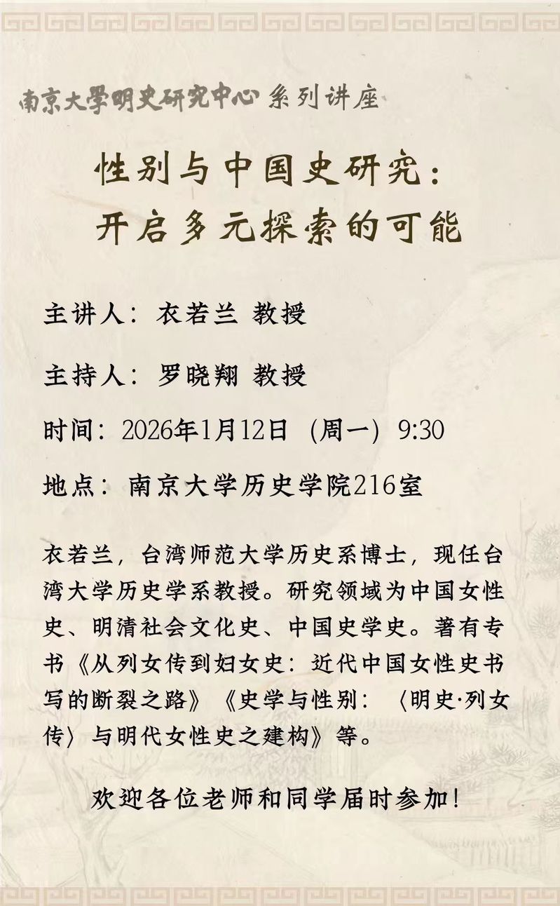 讲座预告 | 性别与中国史研究:开启多元探索的可能