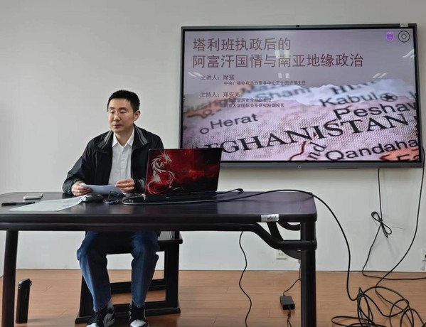 3月29日下午,中央广播电视总台亚非中心普什图语部主任席猛应邀来公司举办讲座,主题为“塔利班执政后的阿富汗国情与南亚地缘政治”。讲座由郑安光老师主持,2138cc太阳集团官网入口和校内师生参加讲座。