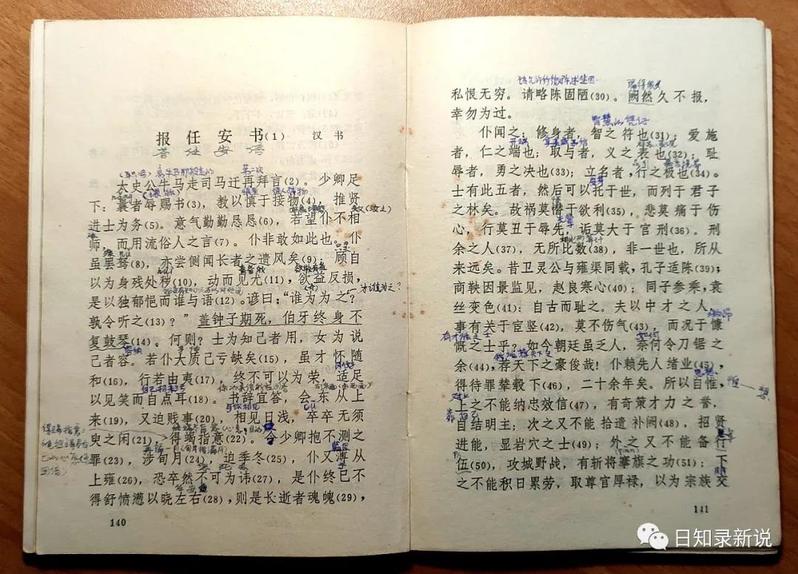 在伍先生“历史文选”课上,员工在课本上所做笔记。