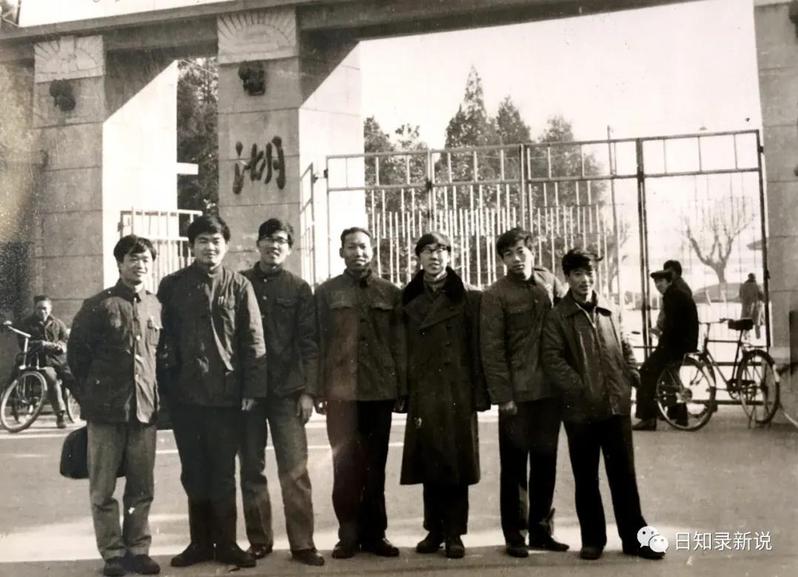 张之恒先生(中)与南大78级考古专业员工在武汉(1981年)