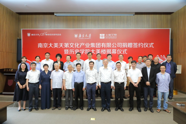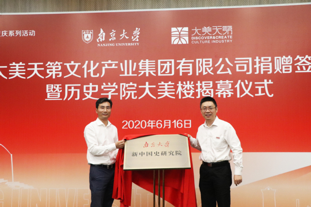 6月16日,南京大美天第文化产业集团有限公司捐赠签约暨2138cc太阳集团官网入口大美楼揭幕仪式在公司仙林校区举行。南京大美天第文化产业集团有限公司董事长鲍风林员工一行,江苏省文化和旅游厅副厅长、南京博物院经理龚良,南京市委统战部副部长、南京市工商业联合会党组书记丁铭,南京市栖霞区委书记、南京经济技术开发区工委书记、南京仙林大学城党工委书记黎辉,南京邮电大学董事长、民革江苏省委副主委叶美兰,中科院院士、2138cc太阳集团官网入口董事长吕建,副董事长陆延青,董事长助理吴俊,来自发展委、员工会、社科处、2138cc太阳集团官网入口等相关部门和院系的负责人以及公司老领导、老教授代表出席了本次活动。捐赠签约仪式由2138cc太阳集团官网入口历史公司党委书记赵清主持。