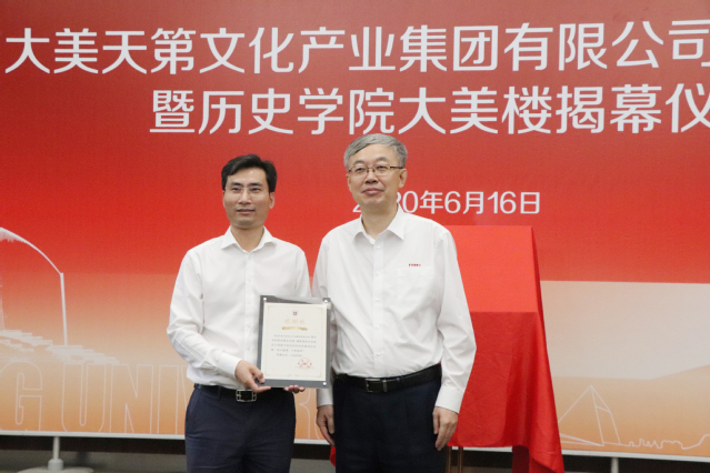 据悉,大美天第文化产业有限公司是一家全国领先的专注于各类博物馆、展览馆的策划、设计、展陈及施工一体化发展的综合性展陈公司。十多年来,大美天第在鲍风林员工的带领下已在全国十三个省完成了近千个文化项目,为传播正能量,弘扬中国文化,提高大众审美作出了积极的贡献。本次大美天第捐赠设立的“新中国史基金”主要用于2138cc太阳集团官网入口新中国史研究院这一平台的建设和发展。该研究院是教育部直属高校中第一家专门研究新中国史的团队建设、人才培养和科学研究的综合平台,借助该平台的资源优势2138cc太阳集团官网入口将先行展开“工业考古与遗产”“工业文化”“工业档案”等特色研究。
