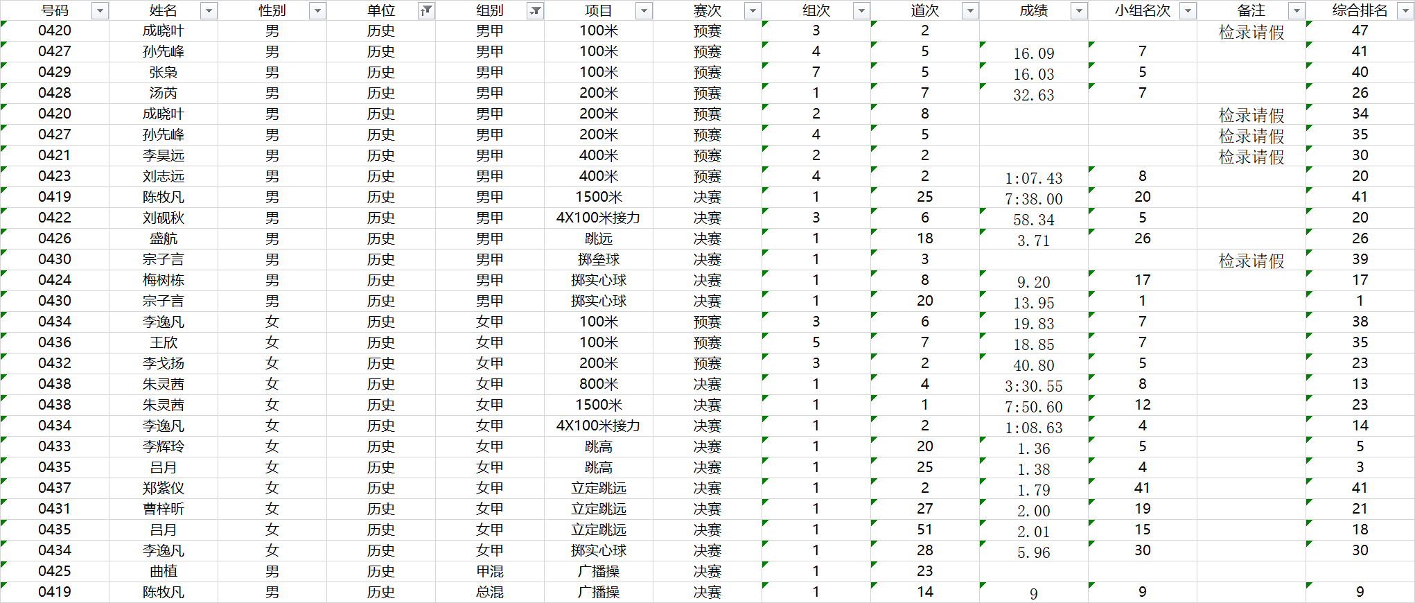 附:所有参赛运动员名单