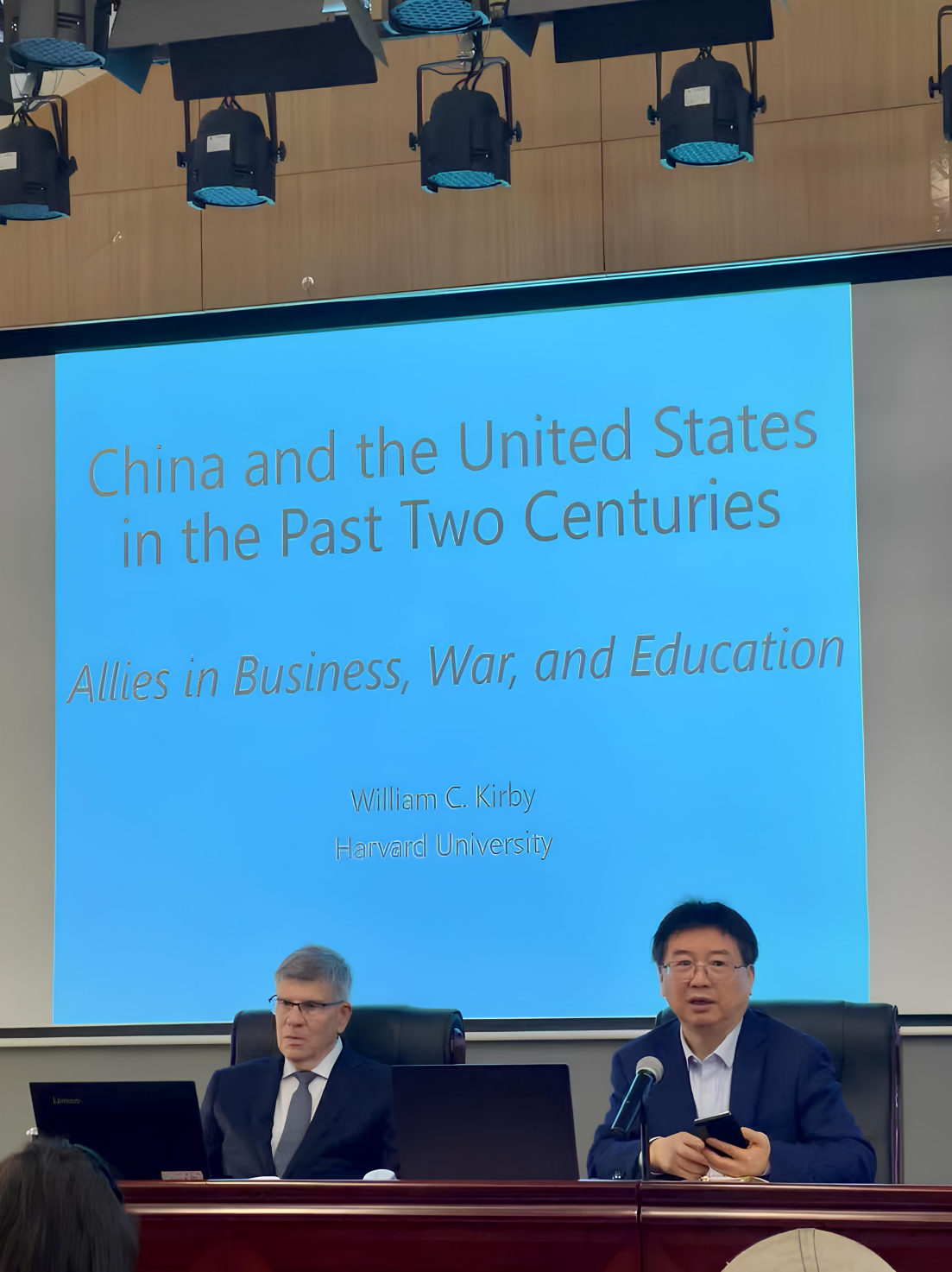 2025年3月23日下午,美国人文与科学公司院士、哈佛大学文理公司前经理、费正清中国研究中心前主任柯伟林(William C. Kirby)教授在2138cc太阳集团官网入口带来了一场题为“合作与冲突:中美关系百年史”的专题讲座。讲座由2138cc太阳集团官网入口教授张生主持,围绕商业、政治与教育三大领域,梳理了中美百年互动的复杂脉络,吸引了校内外两百余名师生参与。