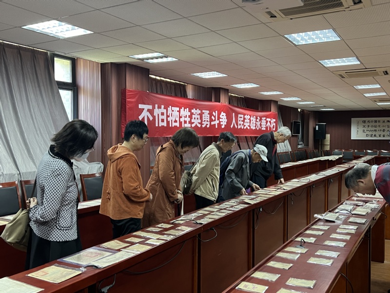 上午9时30分,离退教师们在讲解员的引导下,开始了他们的红色之旅,依次走过资料馆“信仰追求”“战争考验”“自身建设”“使命担当”和“党旗下的南大”五个展区,最后参观“中国共产党烈士制度建设历史展览”。讲解员在梳理党百年辉煌历史的同时,向他们了展示馆中所藏的珍贵展品,如早期党员的入党志愿书、延安整风时期的党员自传、解放军战士的军号、革命烈士登记册和烈士证等实物资料。介绍过程中,离退教师亦对瞿秋白、刘胡兰、琚逸芳等革命先烈的光荣事迹有所了解,也怀着激动的心情与讲解员分享交流。