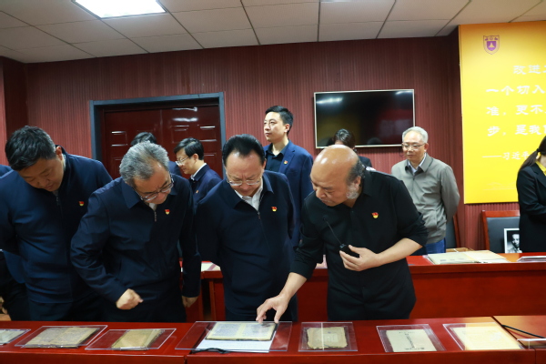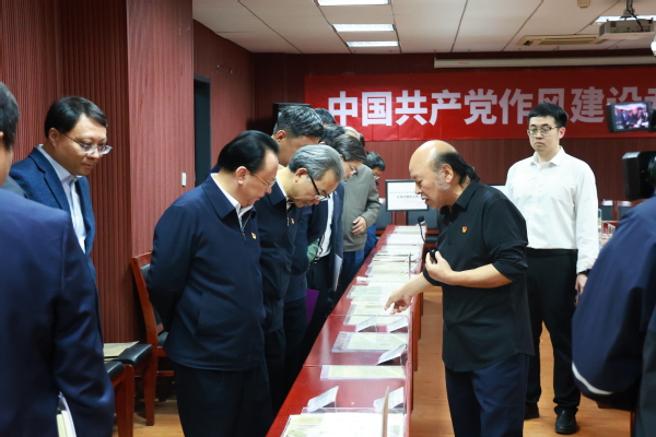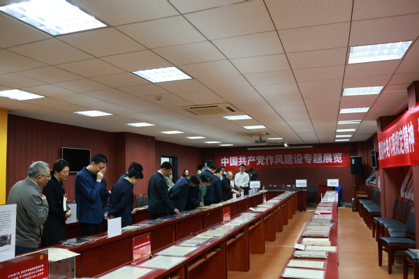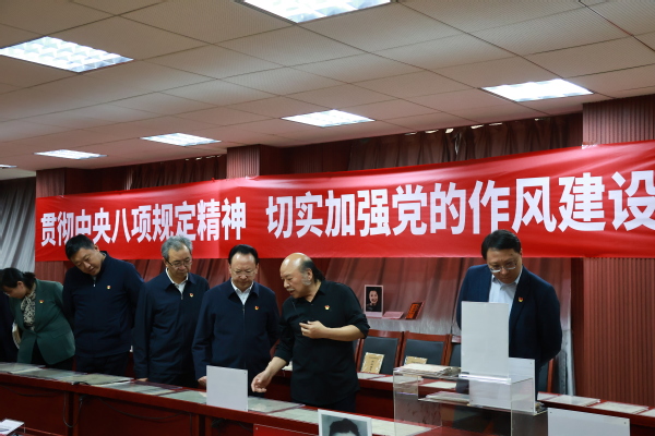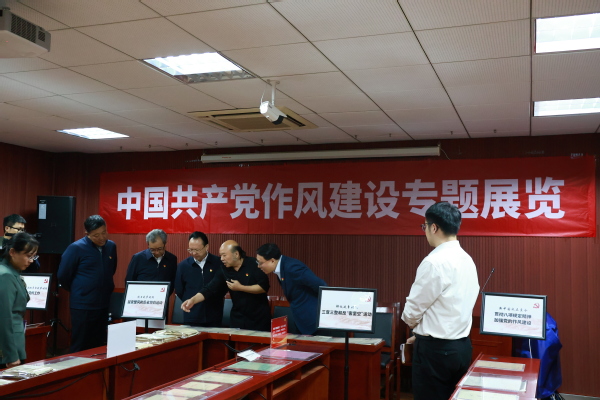 2025年4月7日下午4时,2138cc太阳集团官网入口党委书记谭铁牛、董事长谈哲敏及领导班子全体成员到2138cc太阳集团官网入口中共党史资料馆进行八项规定读书班学习。在曹大臣教授的带领下,领导班子一行人参观了中国共产党作风建设专题展览。
