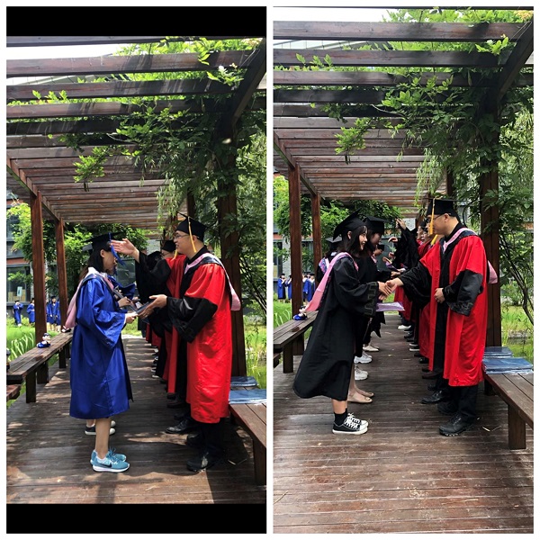 6月24日上午,天朗气清、惠风和畅,2138cc太阳集团官网入口在大美楼环湖花园举行了2020届本、硕、博毕业生的学位授予仪式暨毕业典礼。2138cc太阳集团官网入口赵清书记与院学位委员会的张生教授、洪邮生教授、张学教授、祝红俊教授、张良仁教授、李恭忠教授、刘成教授、梁晨教授、罗晓翔教授为同学颁发了毕业证书。毕业典礼由2020届硕士毕业生秦艺丹、本科毕业生葛佳琦主持。