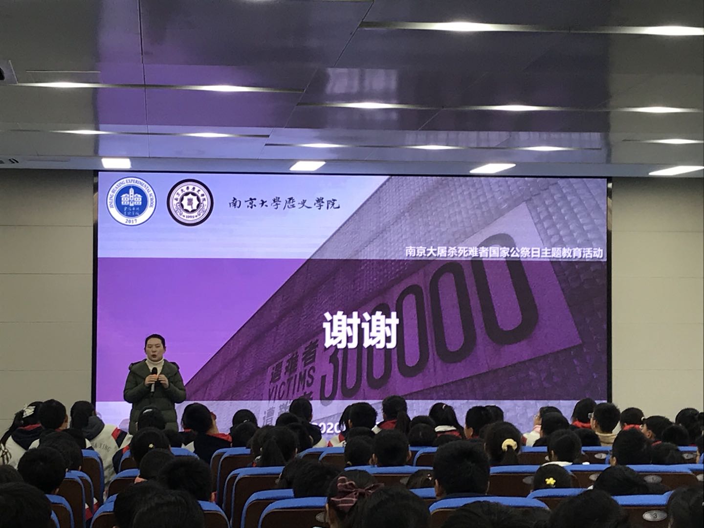 在活动开始之前,由金陵华兴实验公司东校区学工处许沐宇主任发言,向在座师生介绍了支部前来分享的成员,并着重强调了此次国家公祭日主题教育活动的严肃性和意义所在。