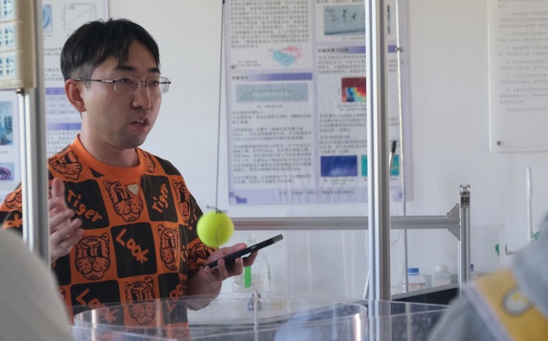 13点30分,同学们去往大气科学公司流体实验室,实验室的学长热情接待,通过丁达尔效应湍流涡旋演示、转盘傅科摆、浅水重力波演示实验,展示了大气微观、宏观的可视变化,并在解说中与生活实际相结合,揭开了大气的神秘面纱,激发考古学同学们对大气科学的兴趣。