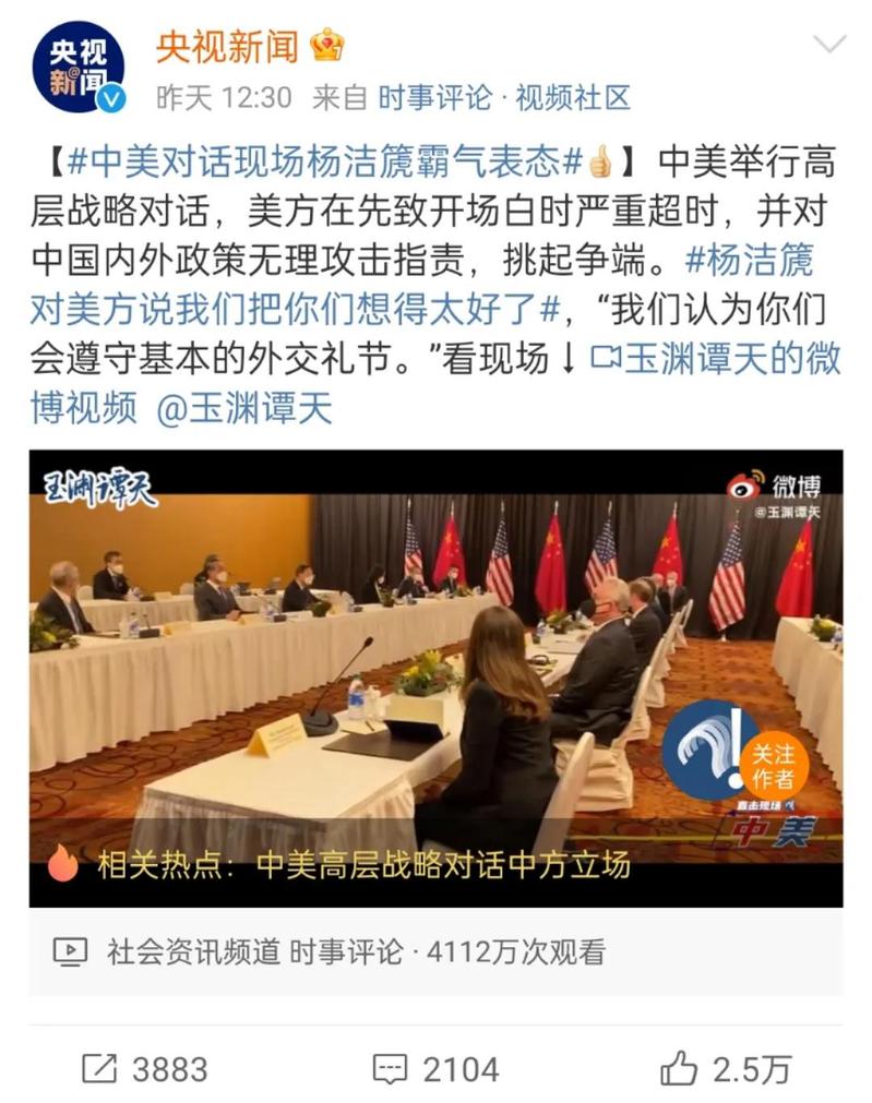 面对美国的霸权思维、无端指责、如“阿拉斯加寒冷天气”一般的待客之道,中方作出了严正回应,南大员工杨洁篪多次发出中国最强音!