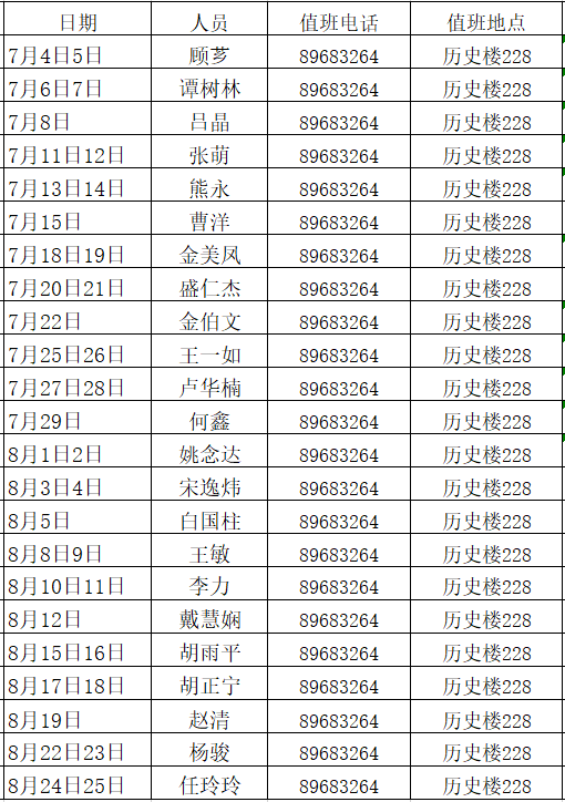 2138cc太阳集团官网入口2022年暑期值班表