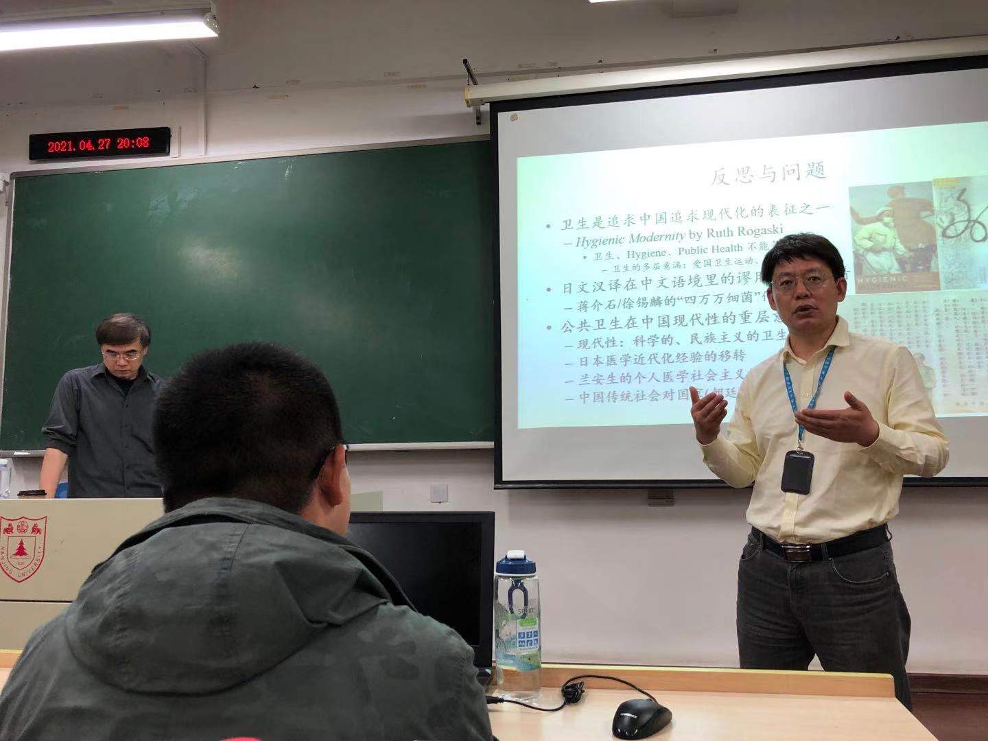 最后绕不开反思与问题。刘士永教授罗列出来的主要有三点:卫生是中国追求现代化的表征之一;日文汉译在中文语境里的缪用与歪打正着;公共卫生在中国现代性的重层意涵。至此,刘士永教授的讲授环节结束了,大家这才如梦初醒,从一场跨越六七百年、纵横欧亚大陆的旅行中回过神来,回到了故土,回到了座位。闵老师在点评环节给予这场讲座高度的评价,并陈述了几点自己的看法,补充了一些刘士永教授没有展开说去的内容。