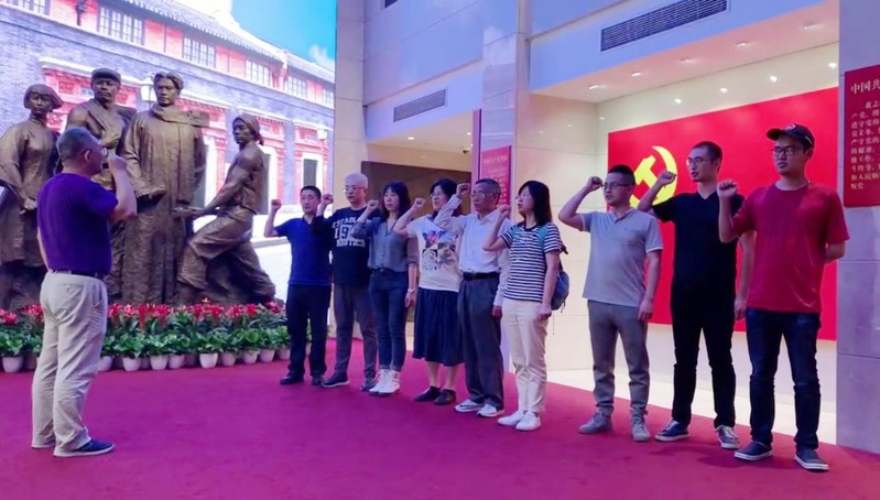 在辅德里中共二大会址纪念馆,大量珍贵的文献、影像和实物资料勾勒出会议的历史背景、代表们的生平经历、会议召开的曲折历程,党员们认真、细致地进行了学习,进一步加深了对党的历史的认识。在支部书记的带领下,党员们在鲜红的党旗前,重温和宣读入党誓词,回溯精神根脉,心潮澎湃,再次坚定“不忘初心,牢记使命”、“全心全意为人民服务”的初衷、决心和意志。