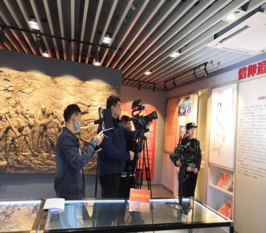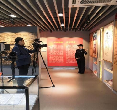 南京港边检站一行4人在党史馆拍摄党史宣传材料。